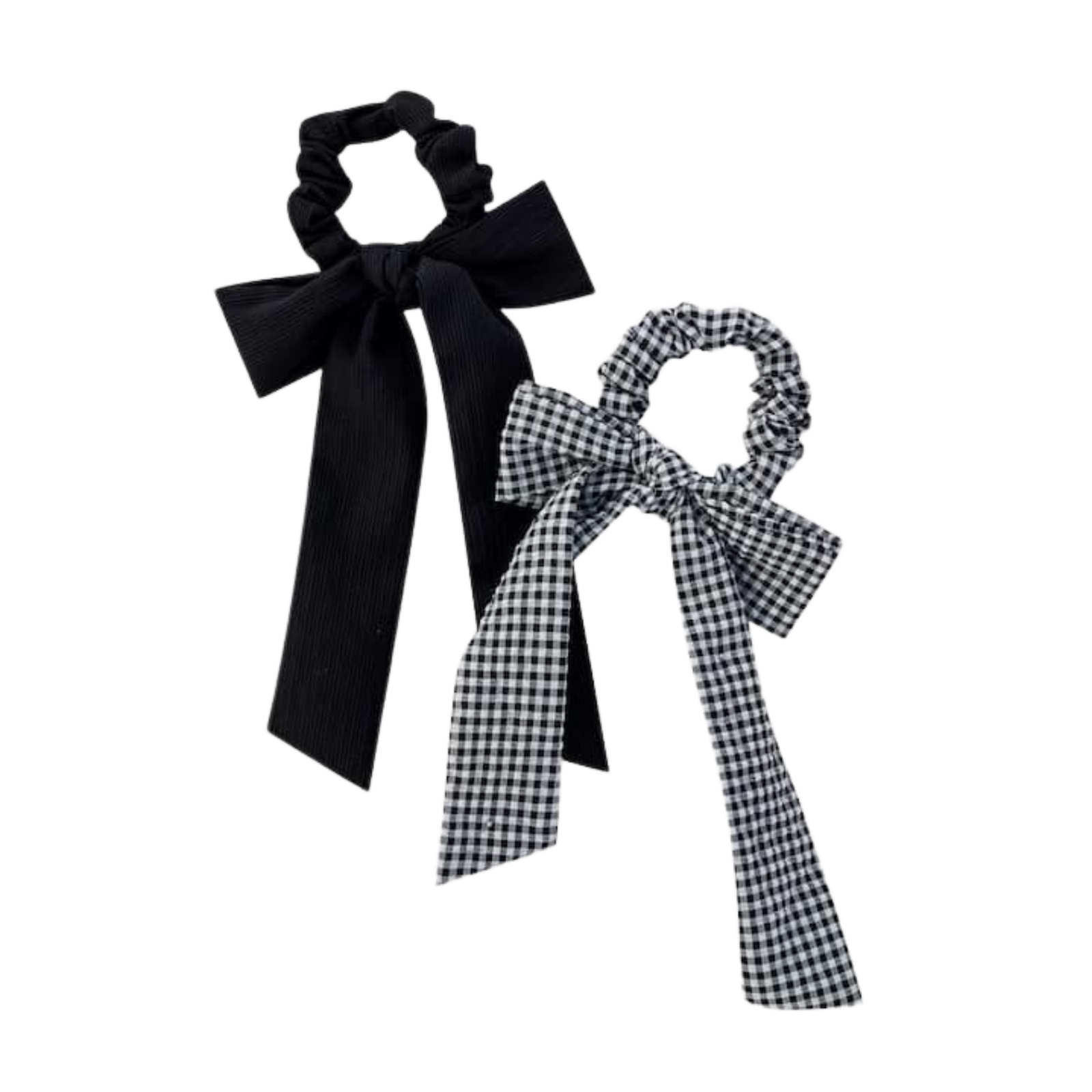 Add a touch of vintage charm to your ponytail with this classic gingham scrunchie. Featuring a black and white checkered print and long, flowing ribbon tails, it’s the perfect accessory for a picnic date or a cute casual outfit.
