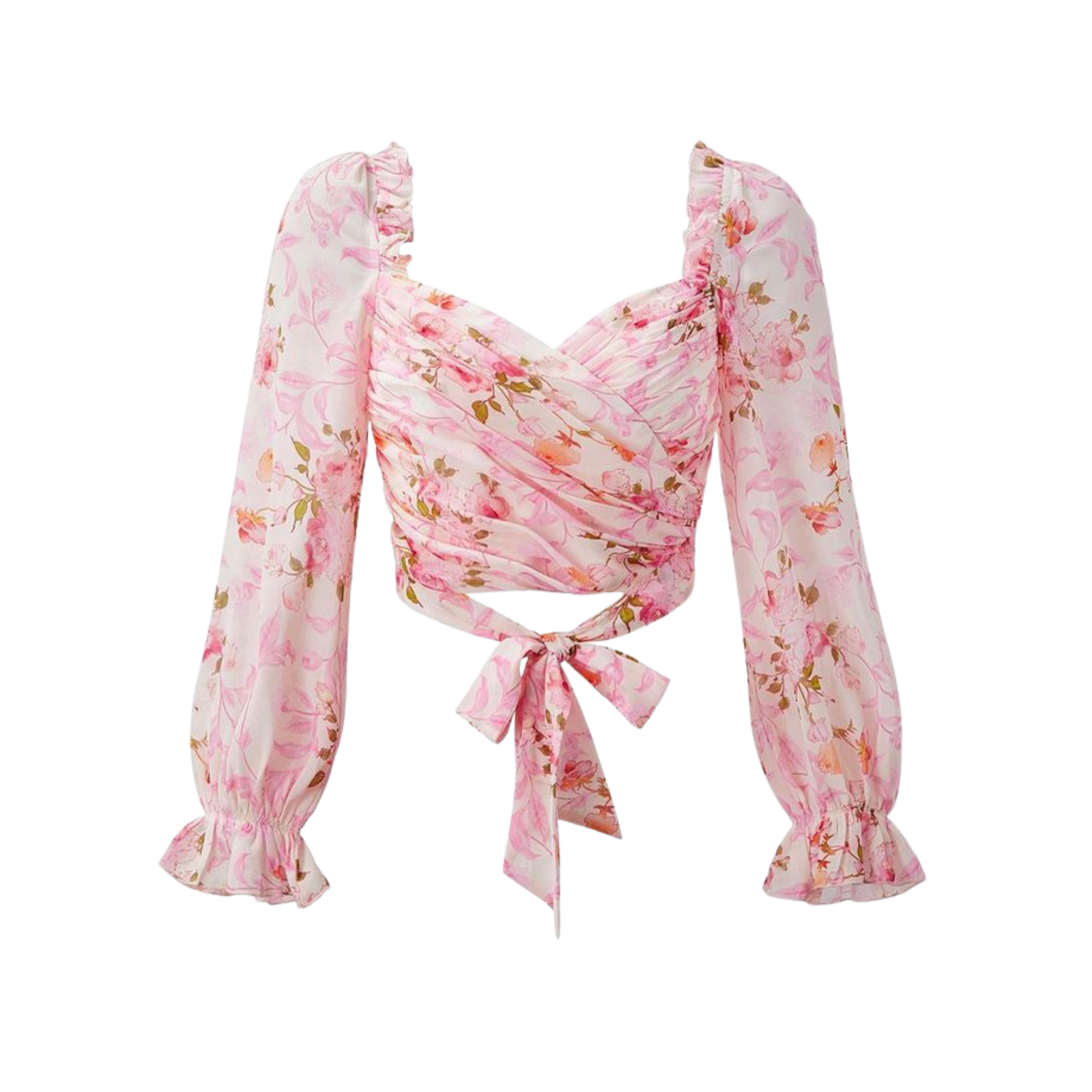 Feminine and fresh, our Pink Floral Wrap Blouse is perfect for brunch or garden parties. The sheer bishop sleeves add volume and drama, while the wrap-tie waist allows you to adjust the fit to be as snatched as you like.